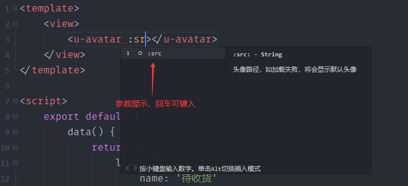up-alert-tips组件,我们可以敲<up-altip,<up-tips,或者<up-alert等等,都可识别出组件的提示,总的来说,以<up,开头,后面可以是组件的部分关键字,前中后部分都可,大家可自行尝试。